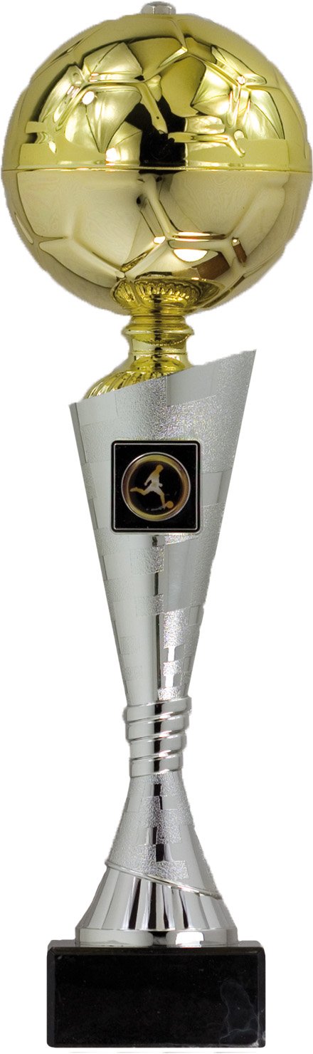 Copa trofeo futbol, realizada en abs, con base en mármol negro.